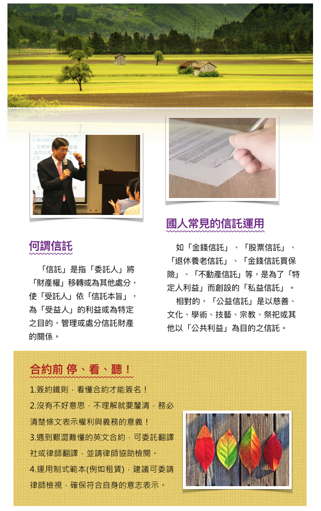 shine080112 2017-04-27 2016/10/01 信託法律知多少?─ 李永然律師 ★本內容版權所有。 對於任意翻印、剽竊、抄襲、轉貼;將訴諸法律途徑,決不寬貸。 ← 台北- 2016.10.01「吸睛就能吸金,一切都跟視覺有關」課程花絮 台北- 2016.10.02「養活生命是本 激活靈魂是根」課程花絮 →