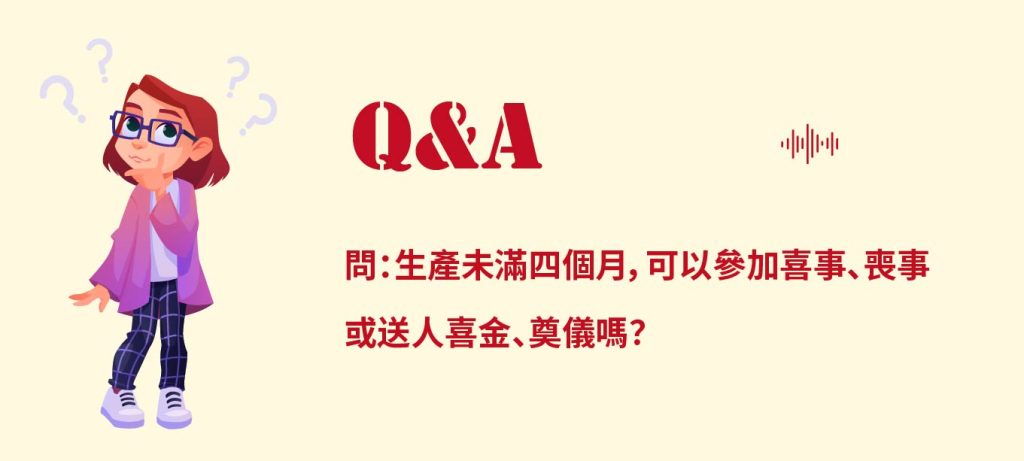 答:不可以,會有沖到喜、沖到喪的問題,因為生產後氣虛氣弱,又帶著喜氣,容易沖到。